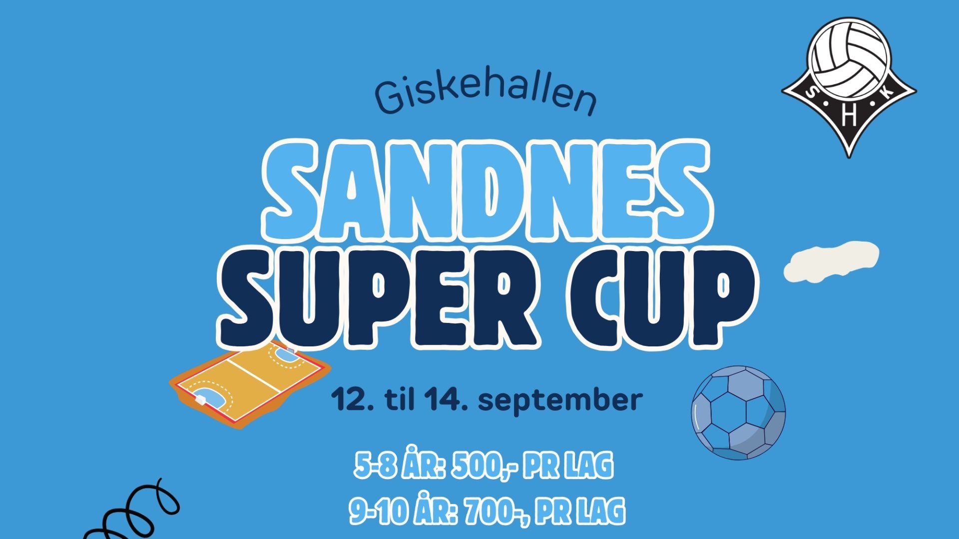Den 12 til 14. september vil det bli arrangert Sandnes Super Cup i Giskehallen for spillere i alderen 5 til 10 år! Fra kl 10.00 til 18.00 vil hvert lag få spille tre kamper hver. Her blir det mye moro og håndballglede. Det vil være åpen kiosk og café, her vil man kunne kjøpe seg lunsj og snacks. På Hjul med mobbing kommer også på besøk med den kule røde bilen!